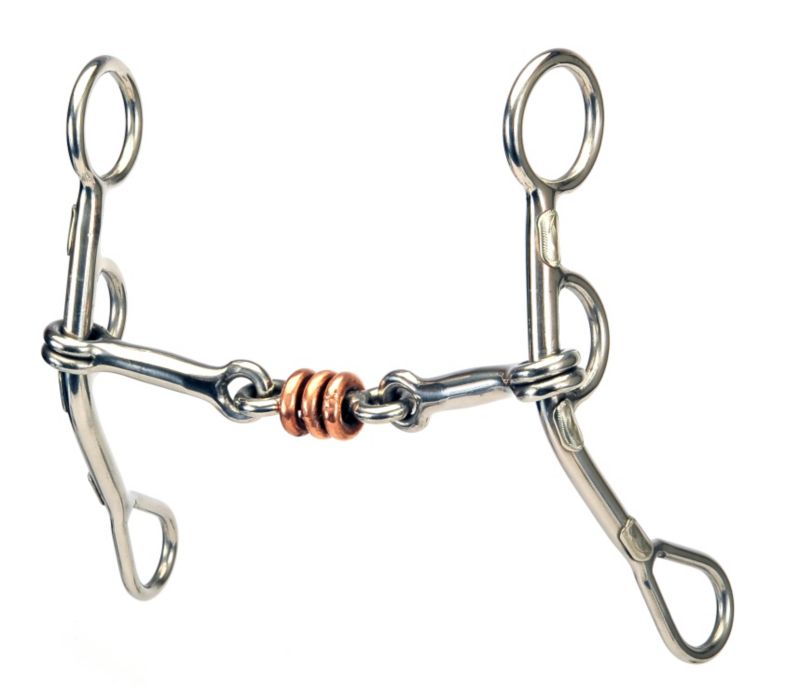 Dog bone snaffles life saver snaffles 3 piece are a very good starter bit and a kinder gentler bit for inexperienced hands.